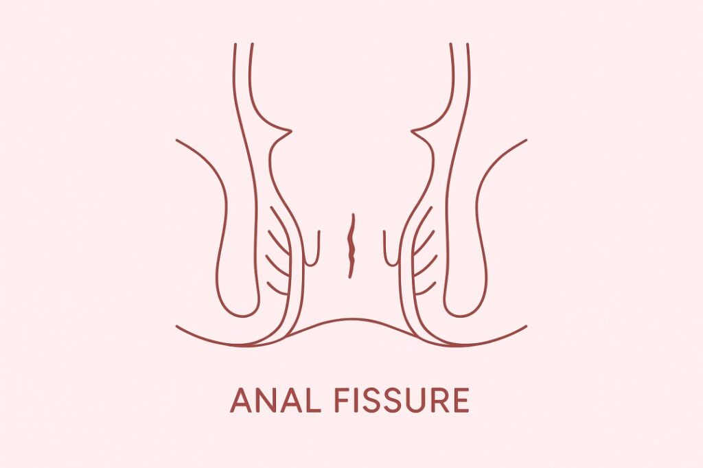 Fissure: A small tear in the anal lining that causes sharp pain and irritation during bowel movements.