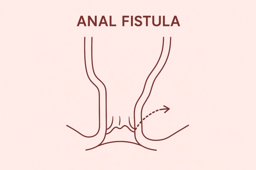 Fistula: An abnormal tract formed between the anal canal and skin, usually following infection or abscess.
